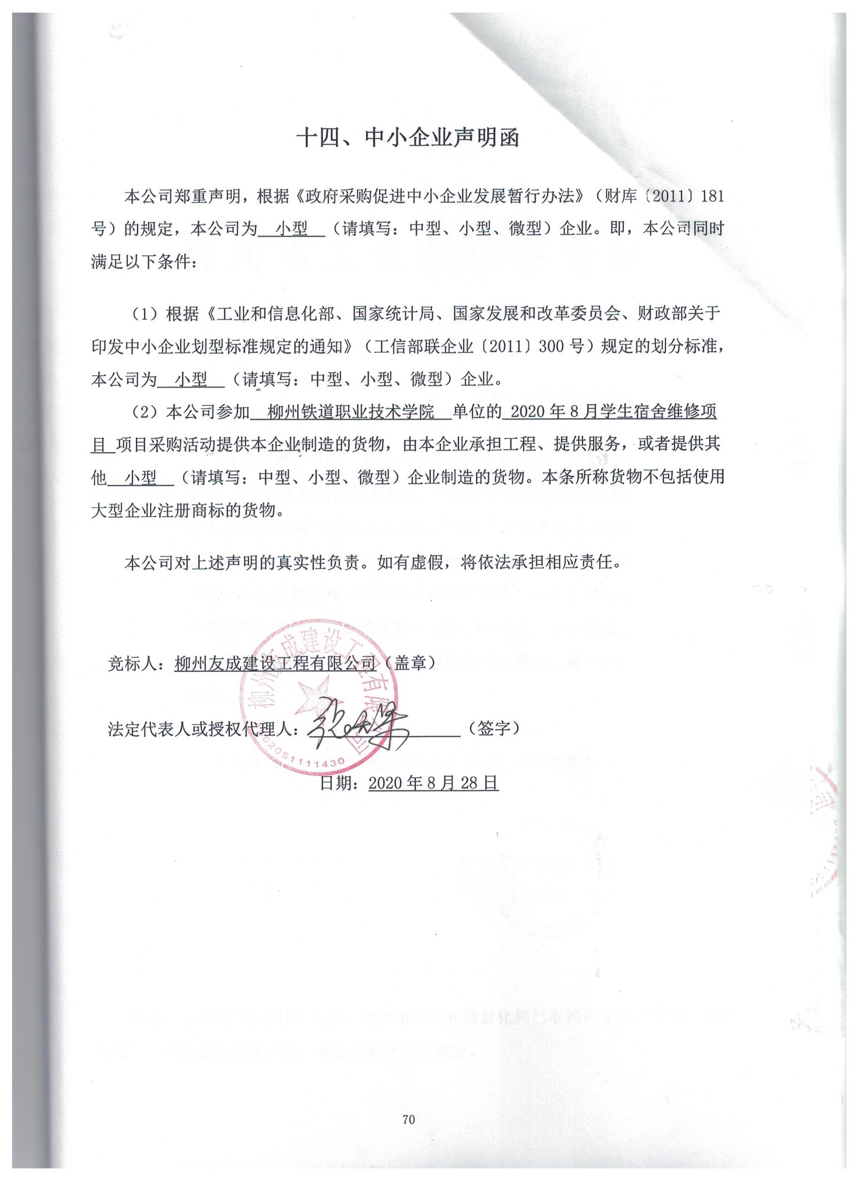 該成交供應商聲明其為小型企業(yè),根據《關(guān)于印發(fā)〈政府采購促進(jìn)中小企業(yè)發(fā)展暫行辦法〉的通知》(財庫〔2011〕181號)第五條的規定,對小型和微型企業(yè)服務(wù)的價(jià)格給予6%的扣除,用扣除后的價(jià)格參與評審。(附:成交供應商《中小企業(yè)聲明函》掃描件